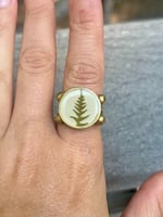 Natural bracken fern preserved in resin. Raw brass metal, adjustable open back.