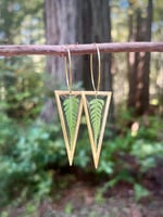Natural ferns preserved in resin. Gold plated stainless steel hoops. Size 30 mm.