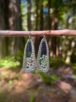 Natural Queen Anne’s Lace flowers preserved in resin. Silver plated hammered metal. Stainless steel ear wires.