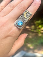Natural Queen Anne’s Lace flowers preserved in resin. Bronze metal, adjustable open back.